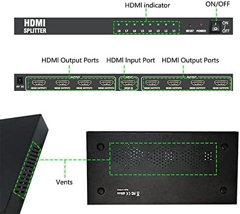 HDMI Splitter 1-8 Ports, Metal, Without Power Adapter